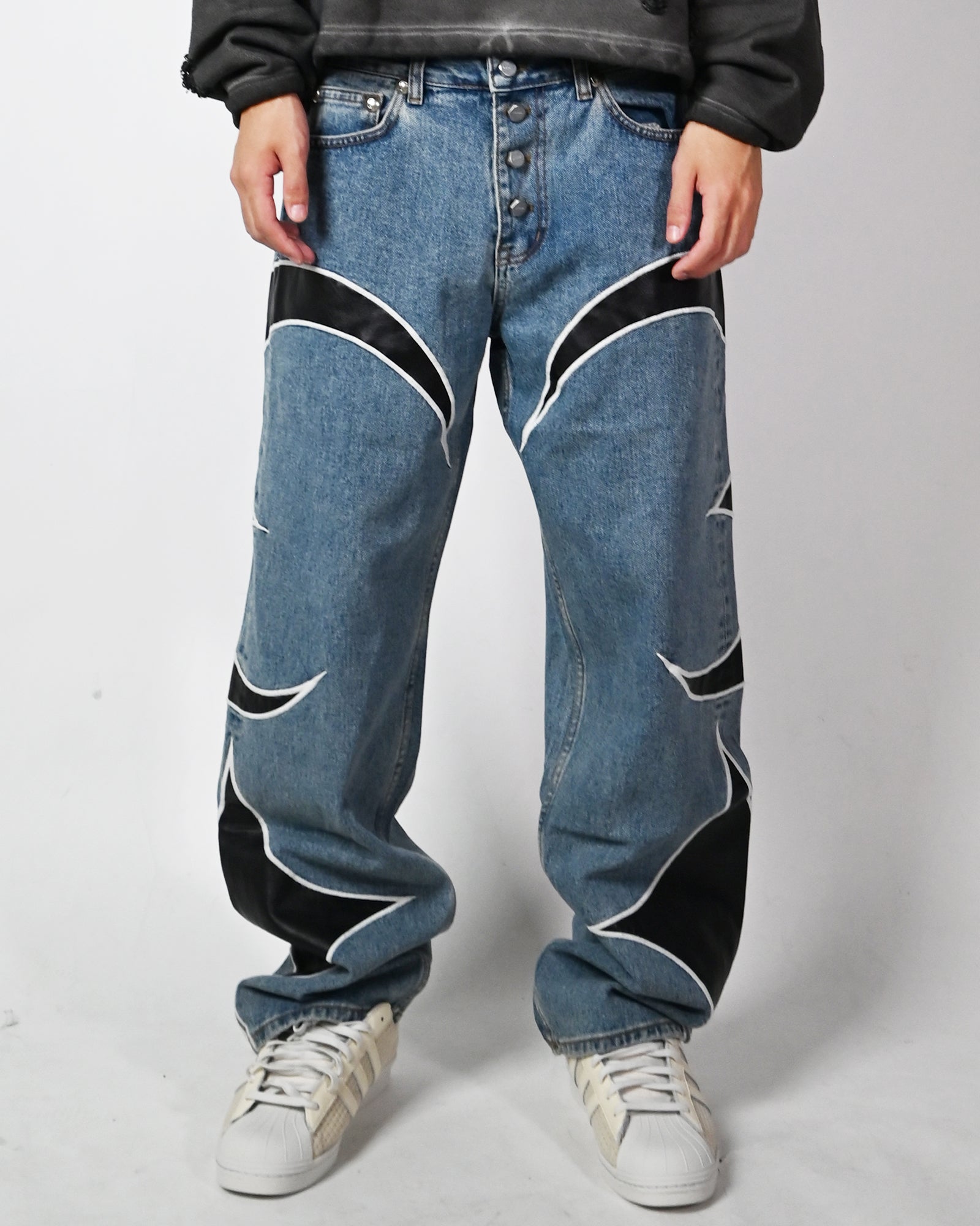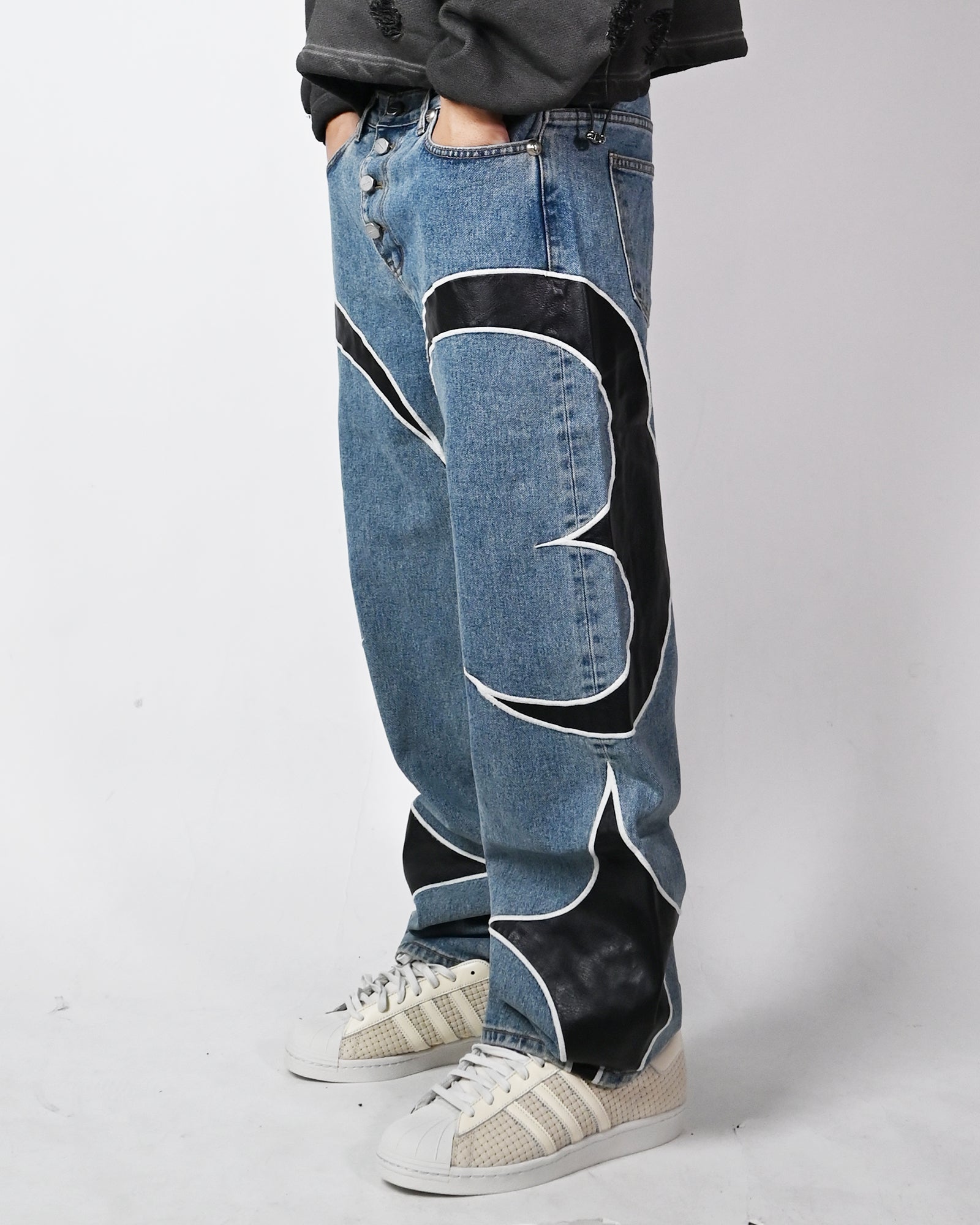 TC LEATHER WASHING DENIM PANTS / BLUE